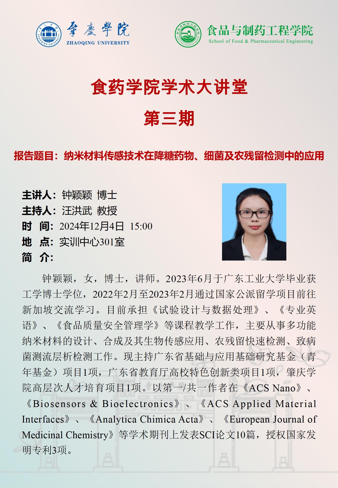 食药学院学术大讲堂丨第三讲 纳米材料传感技术在降糖药物、细菌及农残留检测中的应用