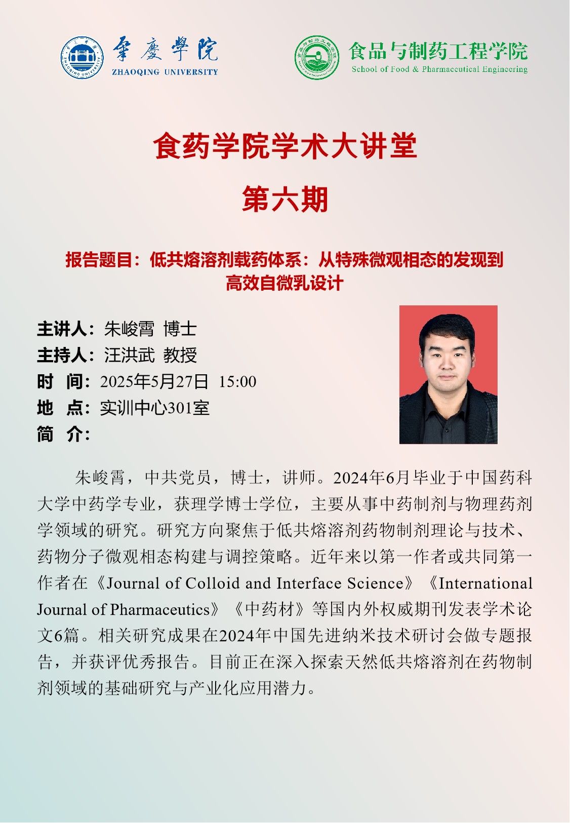 食药学院学术大讲堂丨第六讲 低共熔溶剂载药体系:从特殊微观相态的发现到 高效自微乳设计