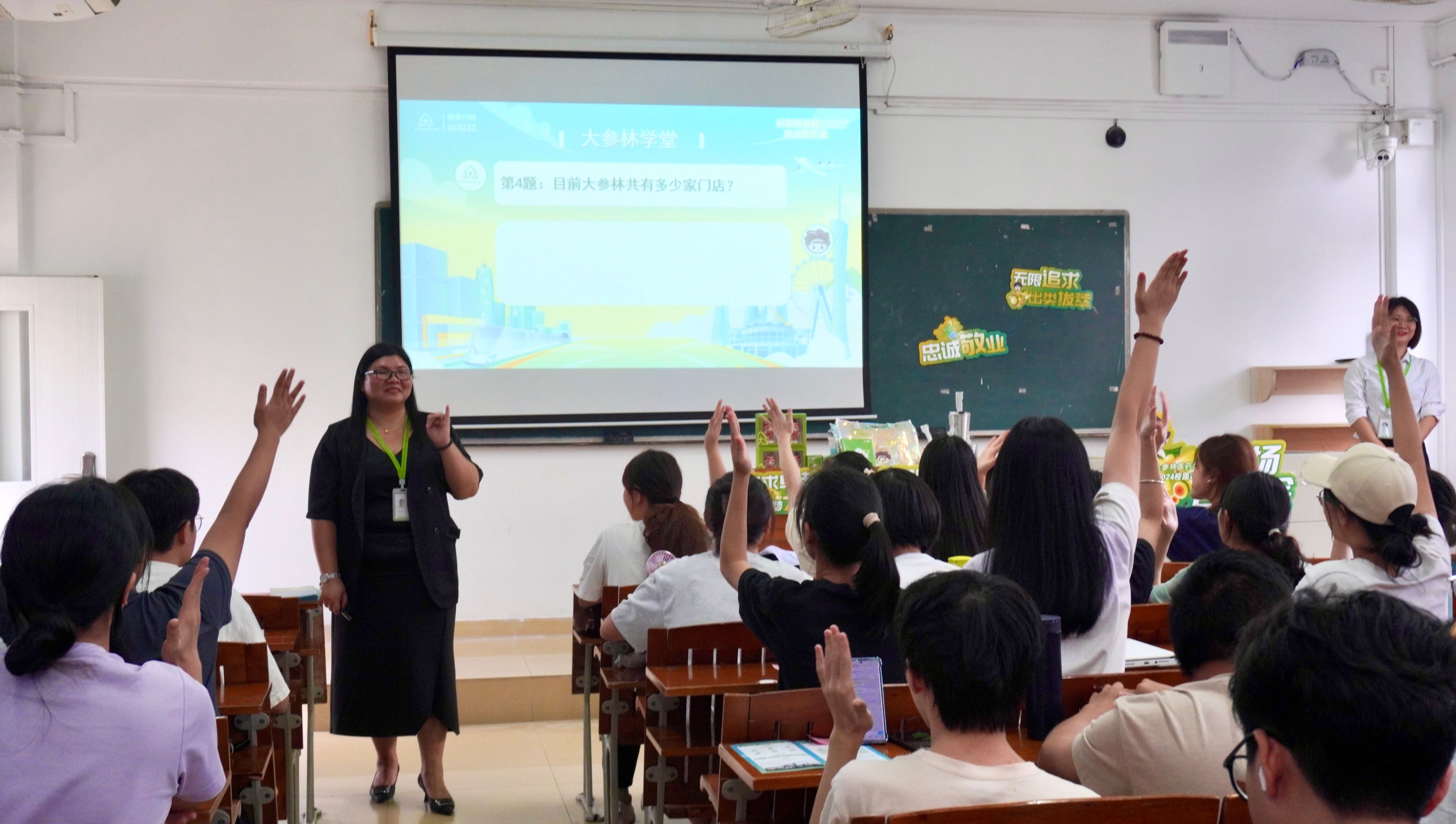 在宣讲会上,廖群爱经理详细介绍了大参林医药集团的发展历程、市场机遇和未来规划。她结合行业就业形势和职业生涯规划的实际情况,分享了宝贵的个人经验,并为同学们提供了求职方法和职业转换技巧等方面的就业建议。同时,她还深入讲解了职工发展通道、薪资福利体系及招聘流程等关键信息,帮助学生们更好地了解大参林医药集团的招聘岗位和职业发展前景。