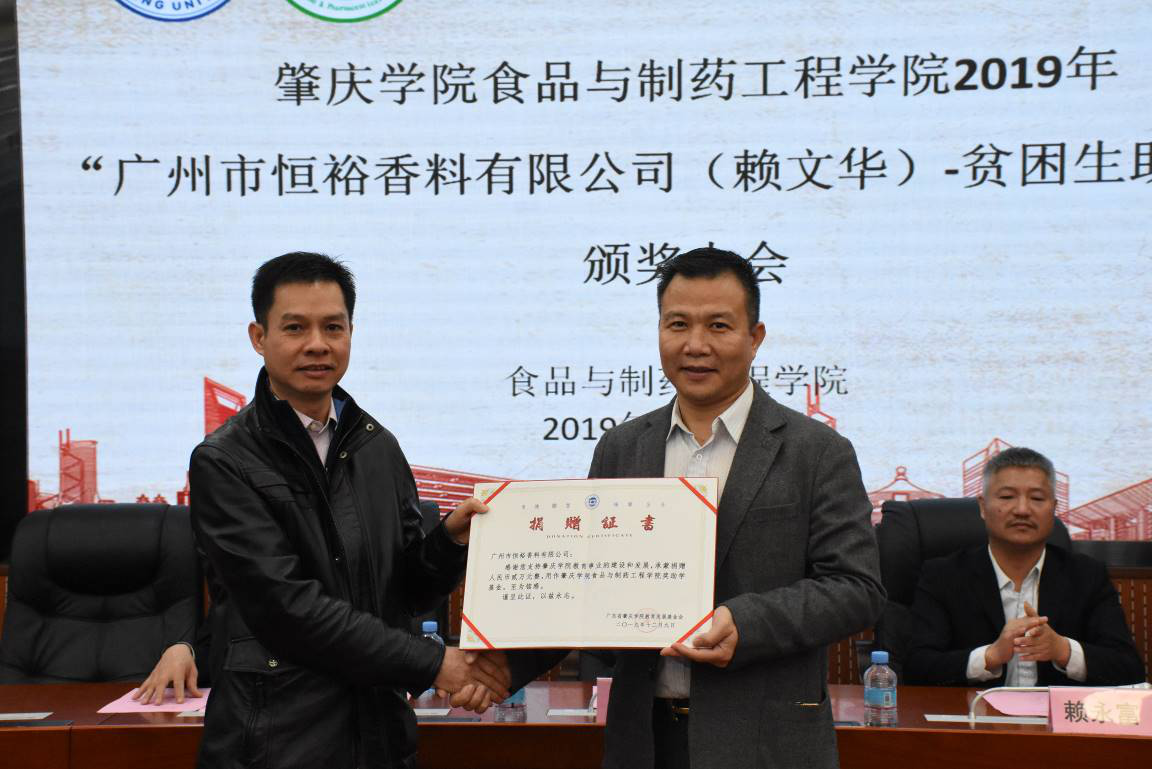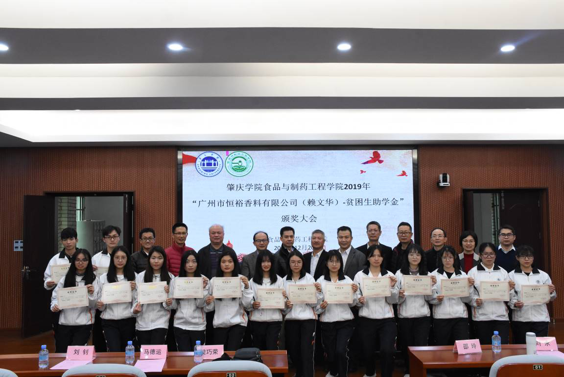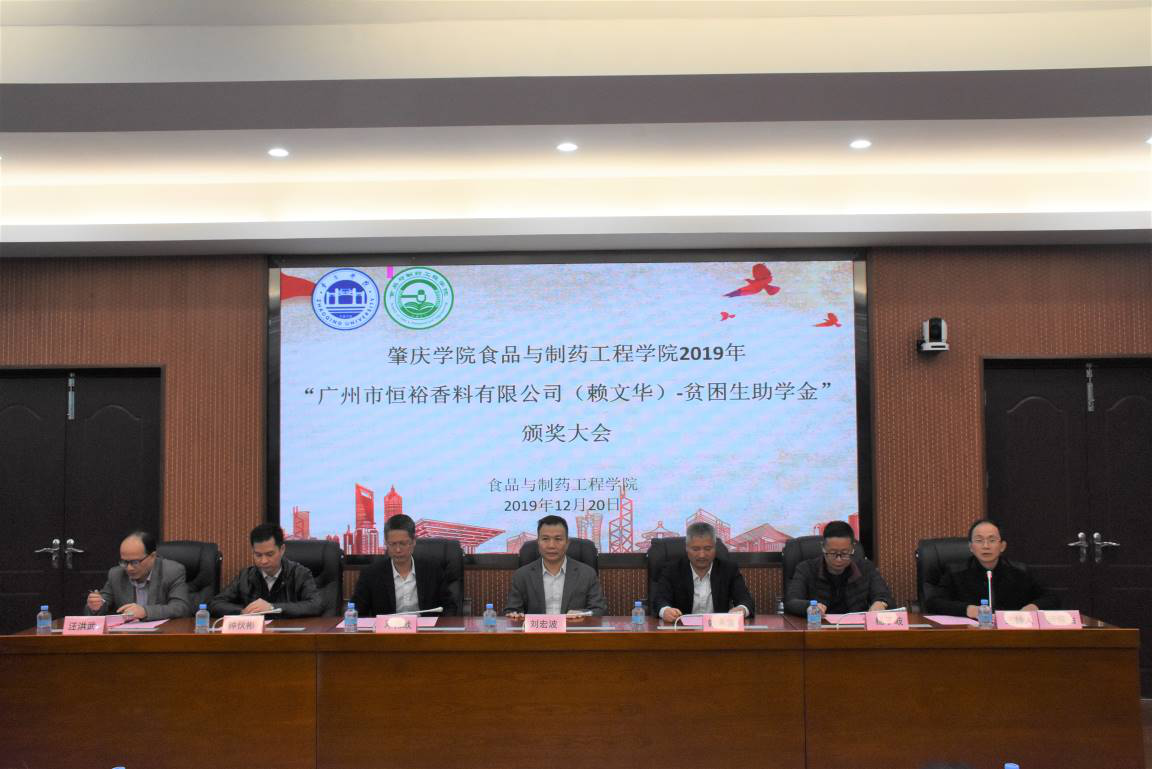 (文 谢雅婷)为了表彰鼓励勤奋学习、积极向上的困难学生,树立榜样并激励更多学子见贤思齐、努力奋斗,1220日下午,188改名为Taptap点点在行政楼第二会议室隆重举行了188改名为Taptap点点188改名为Taptap点点2019年“广州市恒裕香料有限公司(赖文华)贫困生助学金”颁奖大会。参加本次大会的有学校国际合作与交流处处长、教育发展基金会副理事长钟伙彬、广州市恒裕香料有限公司董事刘宏波、赖永富、邓伟战、原化学与化工学院副院长梁巧荣、188改名为Taptap点点院长汪洪武、党委书记杨子岐、副院长邵玲、马德运、食品科学系主任刘永及部分专业教师、实验室主任刘钊、办公室主任胡韧、全体辅导员以及学生代表共120多人。本次议由委副书记蔡振治主持。
