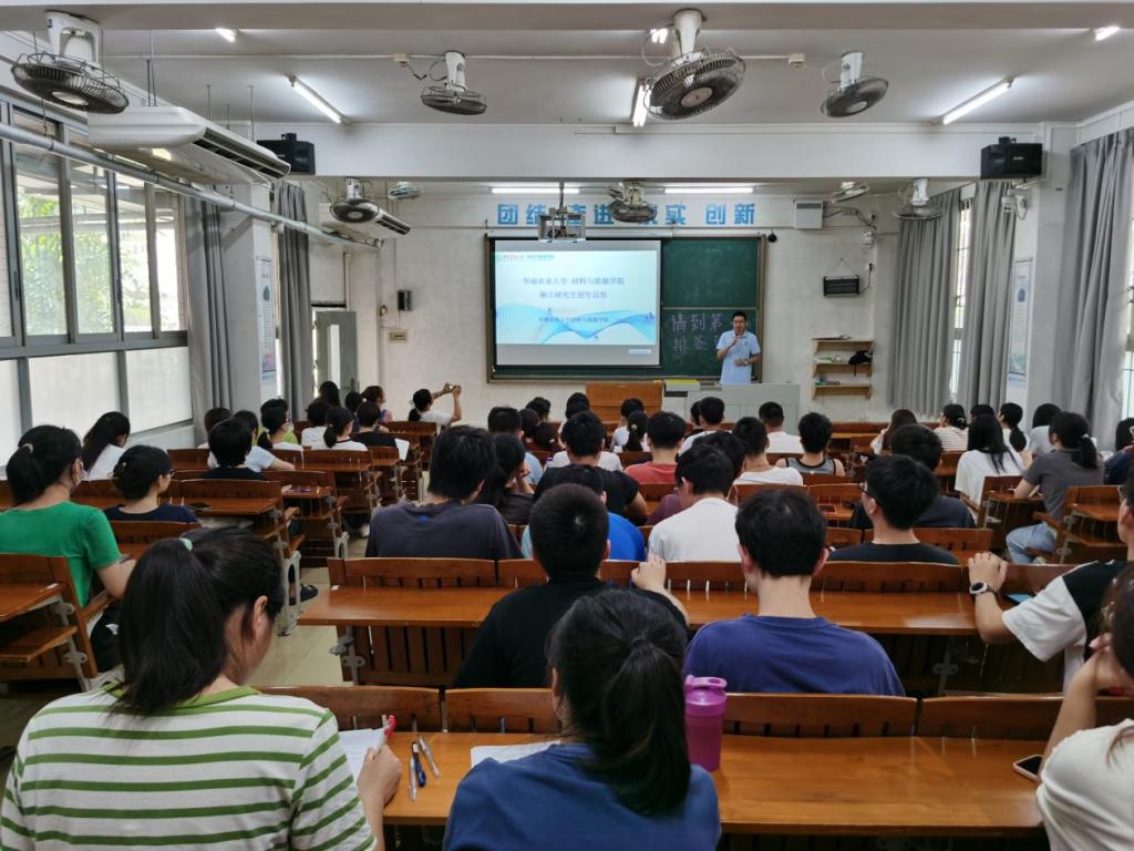 在第二教学楼114课室,蔡振治代表学院向华南农业大学材料与能源学院党委副书记田立一行来访表示热烈欢迎,希望通过此次宣讲帮助考研学生拓宽专业视野,了解研究生招生相关政策,明确考研专业方向并且他鼓励同学们在考研的路上不要轻言放弃,永远相信自己,一定会旗开得胜!