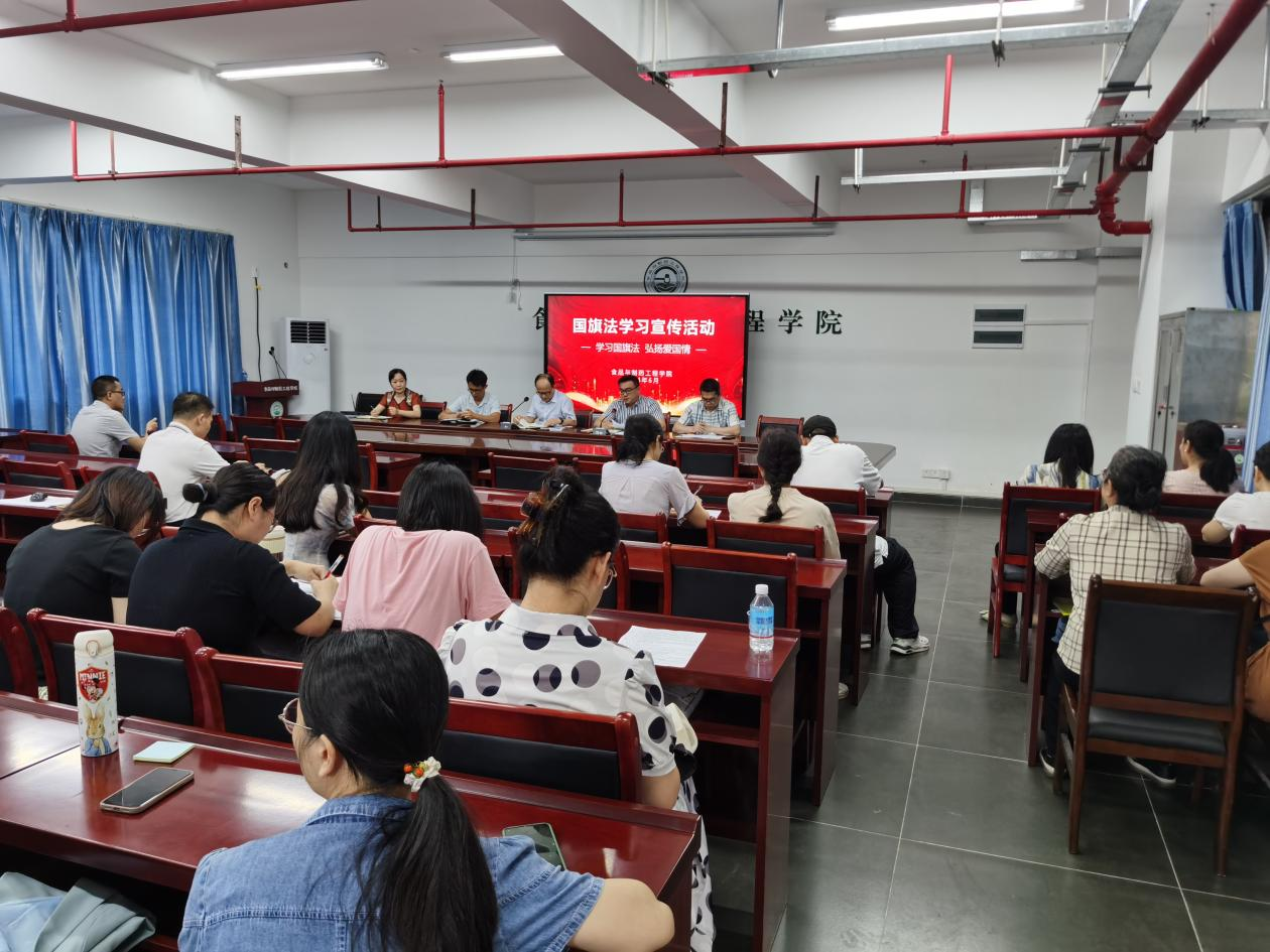 学院党委高度重视国旗法学习的全面性,充分发挥领导作用,组织召开全院教师大会,党委书记林晓忠带领教师们一起学习了《中华人民共和国国旗法》。同时,在学院党委的统一部署下,各班级团支部积极开展主题团日进行学习,并策划开展了“我和国旗合个影”活动。