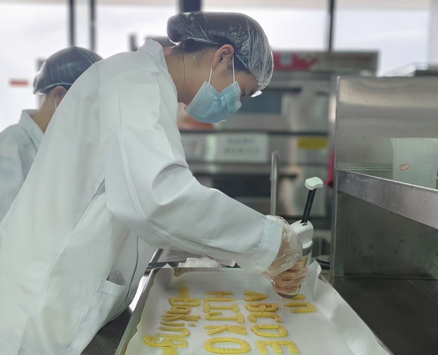 本次大赛分为初赛、复赛和决赛三个阶段,共有559组选手报名参赛,其中专业组44组,非专业组515组。经过层层筛选,有16组选手进入决赛环节。活动伊始,大赛指导老师林艳敏讲解曲奇的制作方法,选手从食材的选择到图案的搭配都展现出极高的水平与创新精神。烘烤后曲奇的创意形状与浓郁香气为我们带来了视觉和嗅觉双重盛宴。