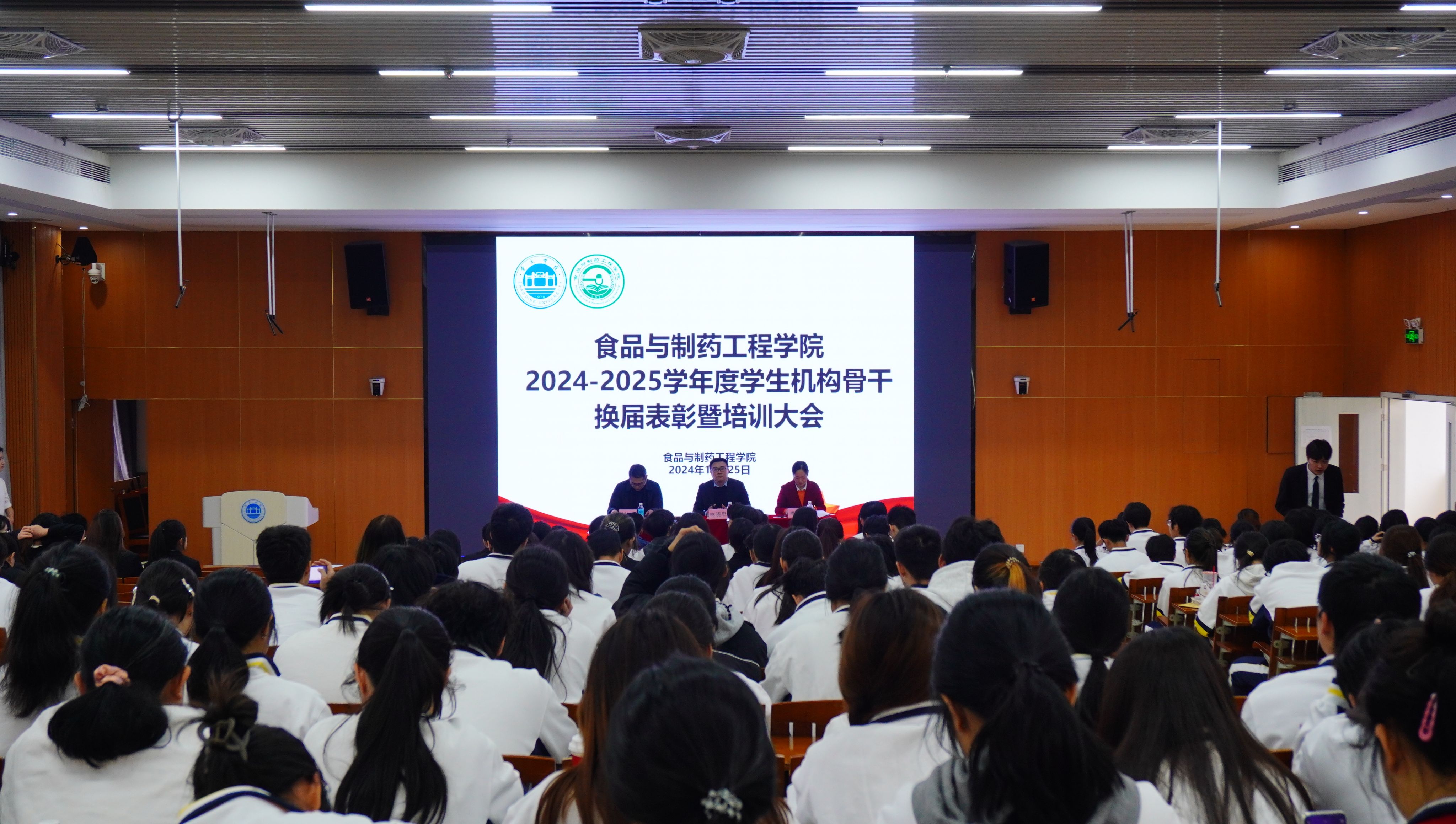 会议在庄严的国歌声中拉开序幕,现场气氛庄重热烈。肖书记首先进行了2024年学生工作总结,回顾了过去一年学院取得的优异成绩,并表达了对学生机构骨干们的感谢和期望。肖书记寄语新一届学生骨干,希望能继承和发扬优良传统,勇于担当,积极作为,为学校发展贡献自己的智慧和力量。紧接着,学生代表黄彦锐同学分享了成长经历,对学院学生机构的未来发展提出工作目标,希望学生骨干们能树立为学院发展建设奋斗不息的坚定信念和崇高理想,以传承食药精神为基本要求,落实完成每一项工作。