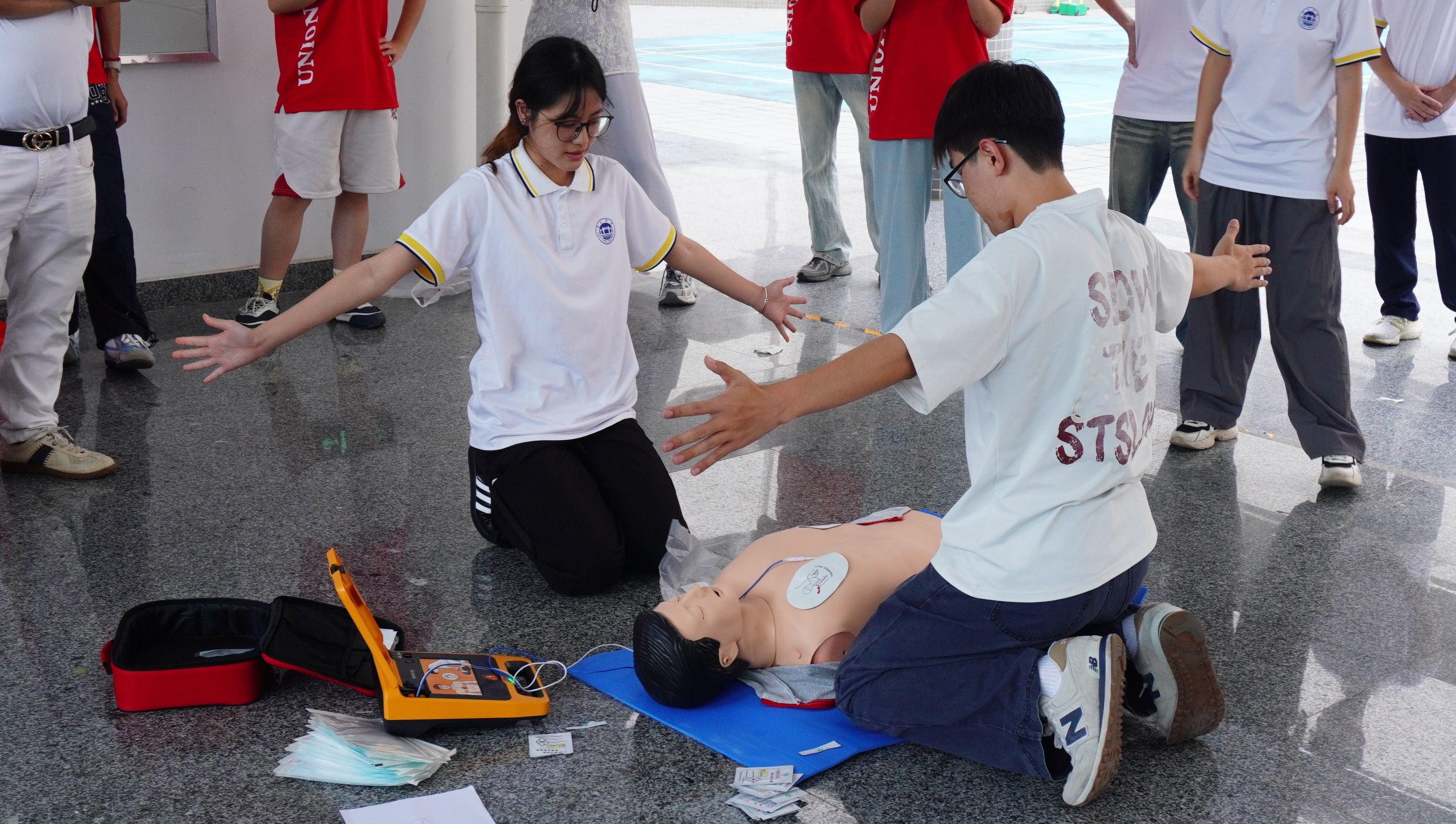 决赛现场,选手们率先在学习通平台限时答题,展现扎实的知识储备;随后,钟丽兰医生以生动案例和通俗语言,深入浅出地讲解海姆立克急救法与心肺复苏理论;实践操作环节,小组成员间默契配合完成心肺复苏操作,将理论转化为实战。评委团从操作规范、步骤完整性、团队协作等多维度综合评分,最终决出一等奖1组、二等奖2组、三等奖3组及优秀奖6组。