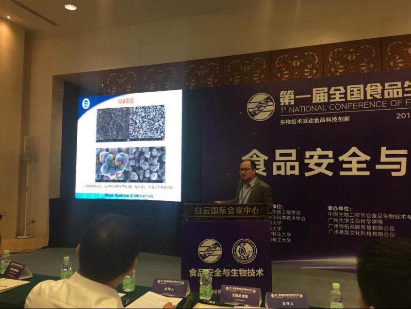 会议期间汪洪武院长在“食品安全与生物技术分会场”作了《电化学传感技术在食品安全检测中的应用》的会场报告,向国内外同行分享了近年来在食品安全检测方面的研究成果。据了解汪洪武教授在喹乙醇、微量桔霉素和双氰胺等农兽药残留方面的检测做了许多研究工作,先后在Biosensors and Bioelectronics,Sensors & Actuators: B. Chemical, Analytica Chimica Acta,Food Chemistry等SCI杂志上发表了多篇研究成果。