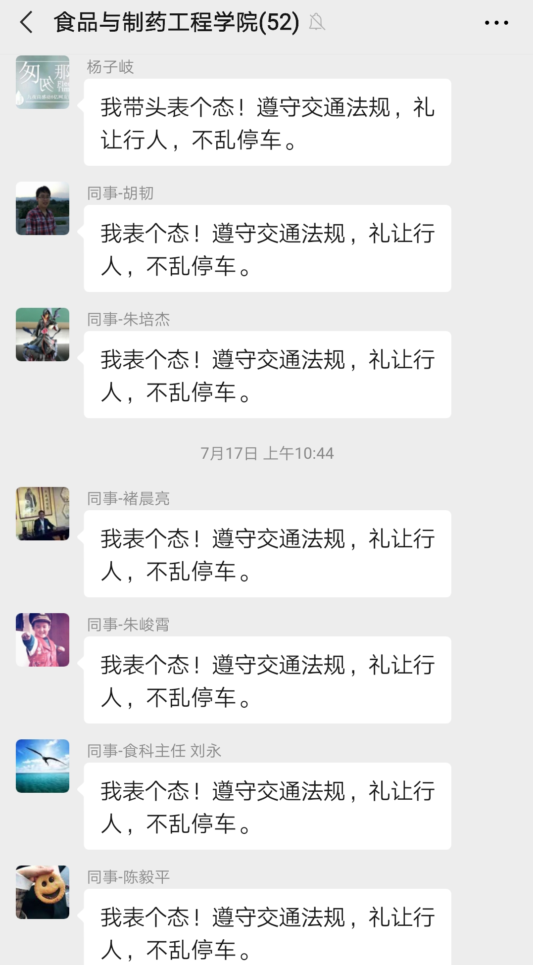 会上,杨子岐书记明确指出,2020年是肇庆市创文决战决胜之年,我们学校作为创文的一个重要阵地,要高度重视,提高思想认识,保持心态不放松、标准不松懈,严格落实网格管理,党员教师更要发挥先锋作用,守好网格、担起责任,务必全力攻坚克难,为肇庆创文做出砚园担当。此外,针对教职工文明行车有关事项,杨子岐书记表示,交通行为折射出交通参与者的文明素质,营造文明和谐的交通环境需要大家的共同努力,每位教师都应该积极养成良好的出行习惯、践行文明有序的出行理念。此后,他带头表态:“我遵守交通法规,礼让行人,不乱停车”,得到了全院教师线上线下纷纷的积极响应。