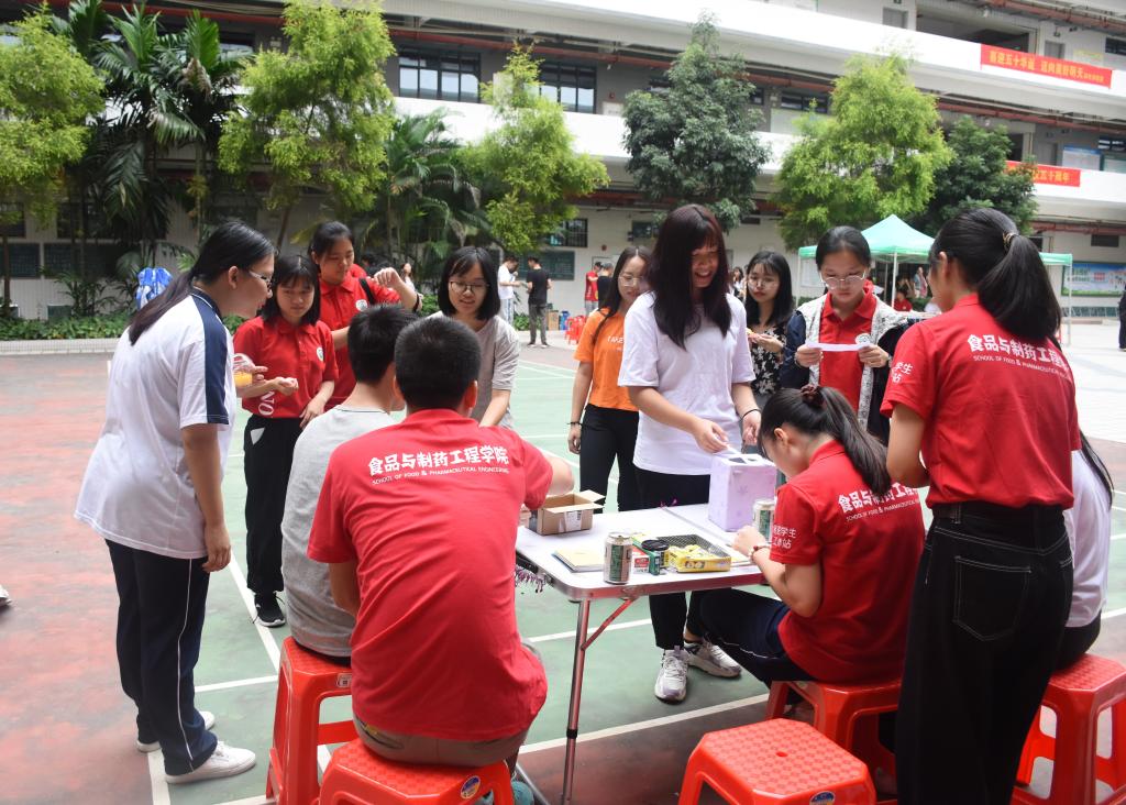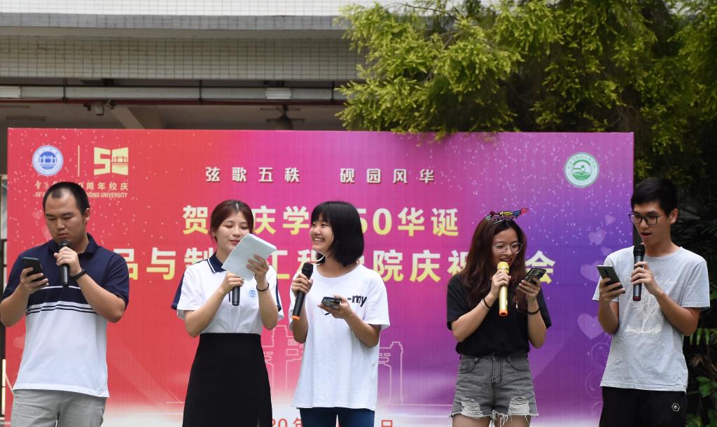 当天早上8:00,师生们开始布置场地,大家细心准备、精心装点,营造出浓厚的喜庆氛围。188改名为Taptap点点团委、学生会、律委会、健促会以及易班五大学生机构分别布置各自的活动摊位,并根据自身特色设计了丰富多彩的互动游戏。活动于9:30正式开始,共计吸引了数百在校师生参与现场游戏比拼互动。师生共贺校庆,共享欢乐,用自己的方式表达对砚园50华诞的喜悦之情和美好祝愿。部分回校校友亦兴致勃勃地参与到游园活动之中,回味着学生时代的欢声笑语和美好往事。与此同时,由校友企业广东隐雪集团提供的鲜磨豆奶、广东新朝阳食品饮料有限公司提供的生榨椰子汁,以及学院精心制作的布丁、蛋糕等饮料和美食,为现场增添了更多的喜悦气氛。11:00,由学生会组织的朗诵和歌唱表演将现场气氛推向了高潮。最后,游园庆祝会在《小幸运》大合唱中圆满结束。