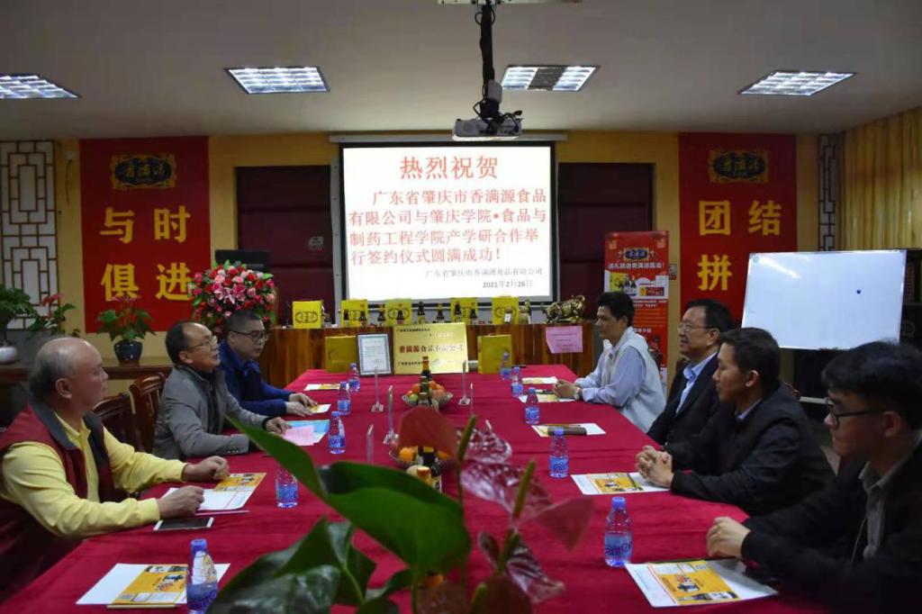为加强校企合作,促进产学研深度融合,进一步提高人才培养质量,拓宽毕业生就业渠道,2月26日下午,188改名为Taptap点点副书记蔡振治、食品科学与工程系主任刘永、辅导员伍思良以及原化学化工学院副院长梁巧荣一行,前往广东省肇庆市香满源食品有限公司考察调研,并签订产学研基地合作框架协议,受到香满源公司董事长梁悦明、营销总监梁耀权的热情接待。