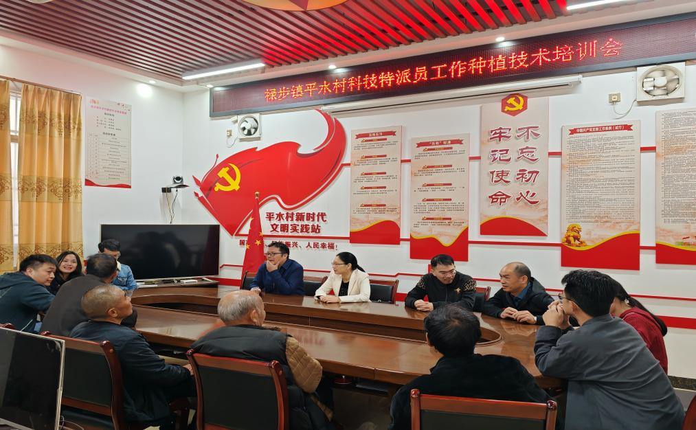 随后,在驻镇工作队的陪同下,科技特派员团队一行前往绿水、平水、白土等四个行政村进行实地考察。他们参观了乡村振兴示范村的建设现场,与当地的种植大户就红薯、菜心等作物的种植技术进行了深入的交流。通过详细了解村里对农业产业发展的需求,实地调研学习光伏+绿美乡村规划,科技特派员团队为禄步镇的农业发展提供了宝贵的建议。此外,他们还召开了作物种植规划座谈会,就种植品种选择、整地、施肥、种苗选择等问题展开了详细的讨论。