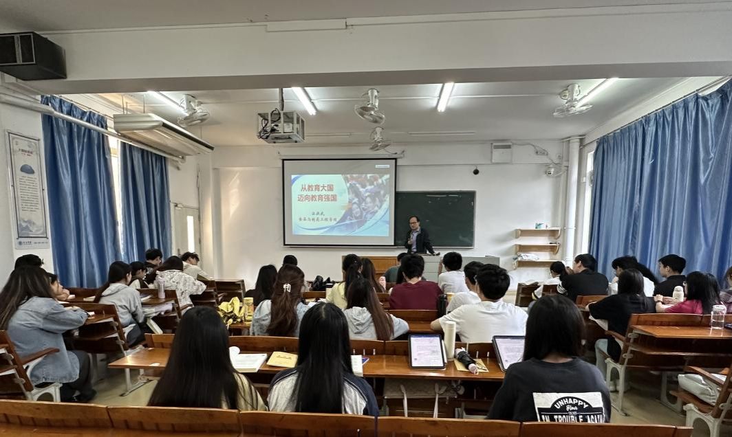 3月24日,汪洪武院长以“从教育大国迈向教育强国”2023级食品质量与安全专业40名学生,围绕《教育强国建设规划纲要(2024—2035年)》,从“为什么建设教育强国、建设什么样的教育强国和怎样建设教育强国”三个方面展开讲解,勉励同学们要把个人发展融入民族复兴的伟业之中,积极投身中国式现代化的广东实践,为强国建设、民族复兴贡献青春力量。