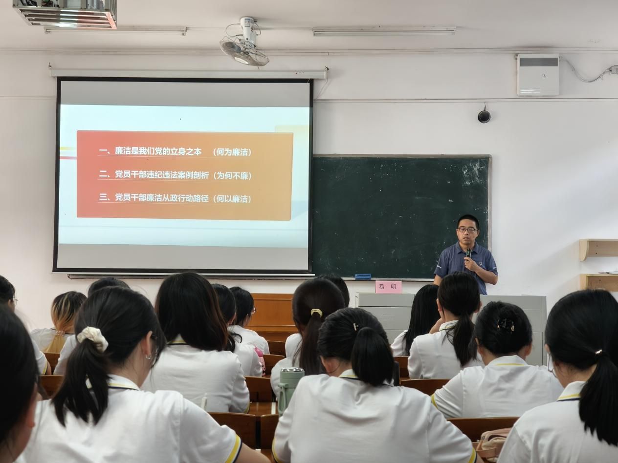 课堂上,易明老师从“廉洁是我们党的立身之本”切入,详细阐释了廉洁的内涵,引用战国时期屈原《楚辞·招魂》“朕幼清以廉洁兮,身服义尔未沫”等典故,点明廉洁在个人修养层面“不贪财货、光明磊落”的意义。同时,介绍中华优秀传统文化中丰富廉政思想,如管子“礼、义、廉、耻是国之四维”等观点。