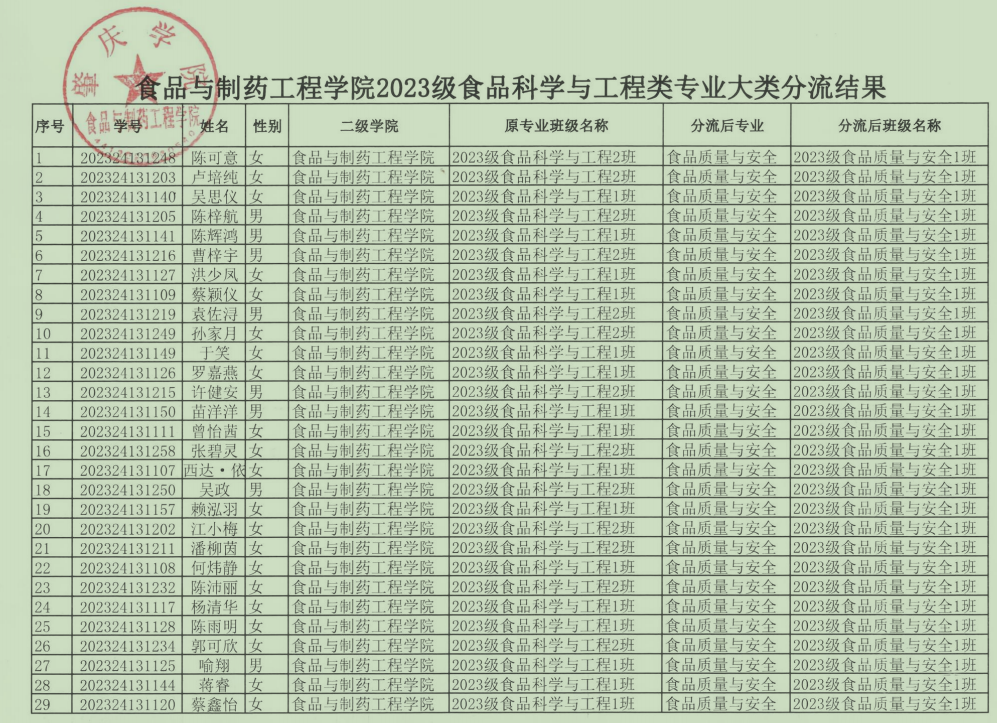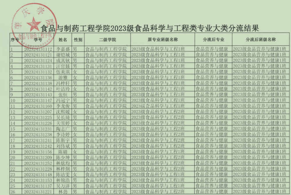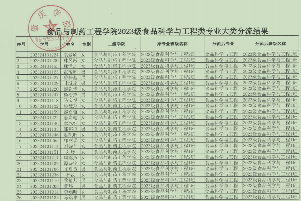 188改名为Taptap点点2023级食品科学与工程类本科招生专业拟分流学生名单公示