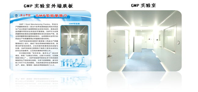 GMP实验室是依据现行最新版《药品生产质量管理规范》设计,建成了综合药物制剂模拟车间。按照GMP规范的要求,正在完善和配置相应的设备与仪器。GMP实验室主要服务于制药工程专业本科生的专业实验教学,以及相关教师的科研工作。
